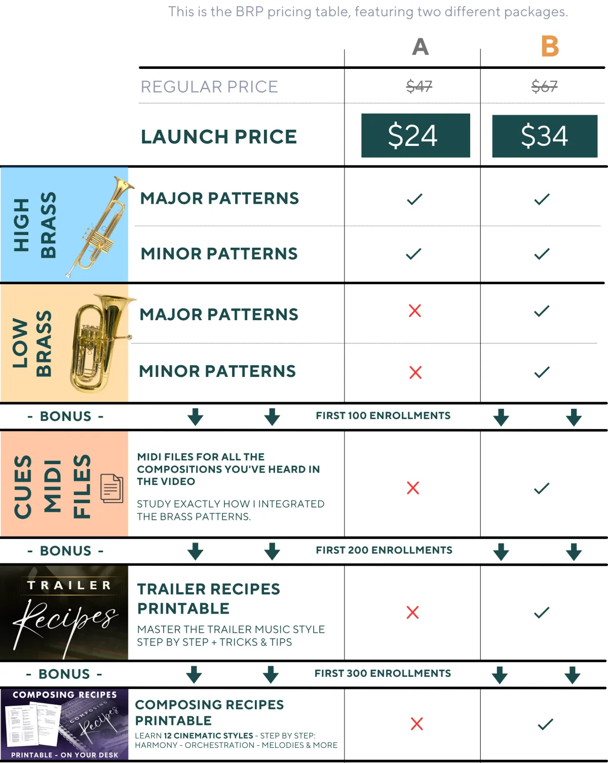 - 20 unique rhythmic patterns - Complete brass arrangements, not single notes
